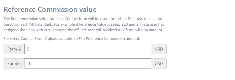 2. In ‘Reference Commission value’ section, you may set the Reference Value for each Contact form.