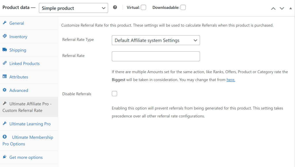 - Look for the “Ultimate Affiliate Pro – Custom Referral Rate” section on the product page.