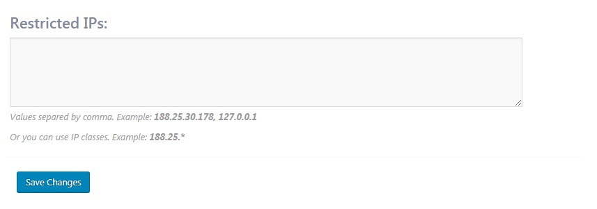 2. In “Restricted IPs” section, you may save visitors’ IP addresses in order to restrict access to the register form.