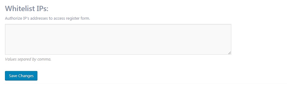 3. In “Whitelist IPs” save visitors’ IP addresses in order to grant access to the register form.